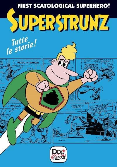 Per restare in tema fumetti, nel 1987 nasce Superstrunz, un supereroe che può volare grazie alla spinta delle sue potentissime scorregge! E per combattere i suoi avversari, usa… la cacca!