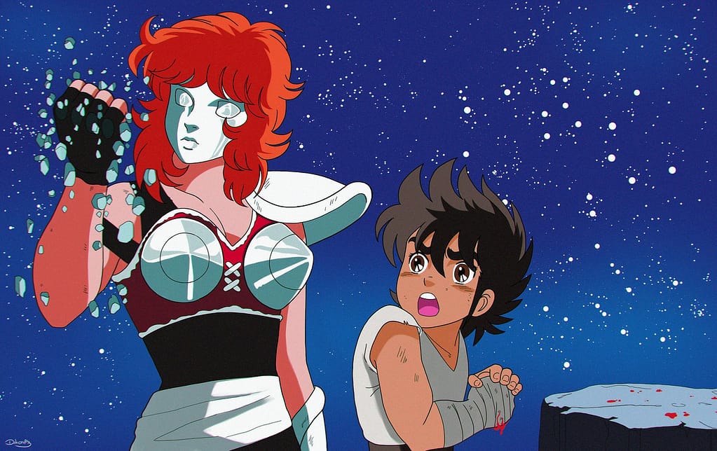 Un rapporto a metà tra incesto (Castalia si comporta da sorella maggiore, anche se un po’ manesca, nei confronti di Pegasus ) e adorazione verso il senpai, quello tra Pegasus e Castalia ( Seiya e Marin nella versione originale) rappresenta uno dei legami più stretti della serie, per questo anche il mio preferito.